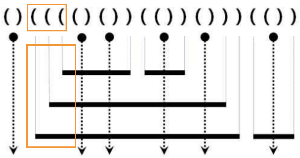 그리고 )를 만났을때는 나머지 1개의 막대기가 생성되게 된다.