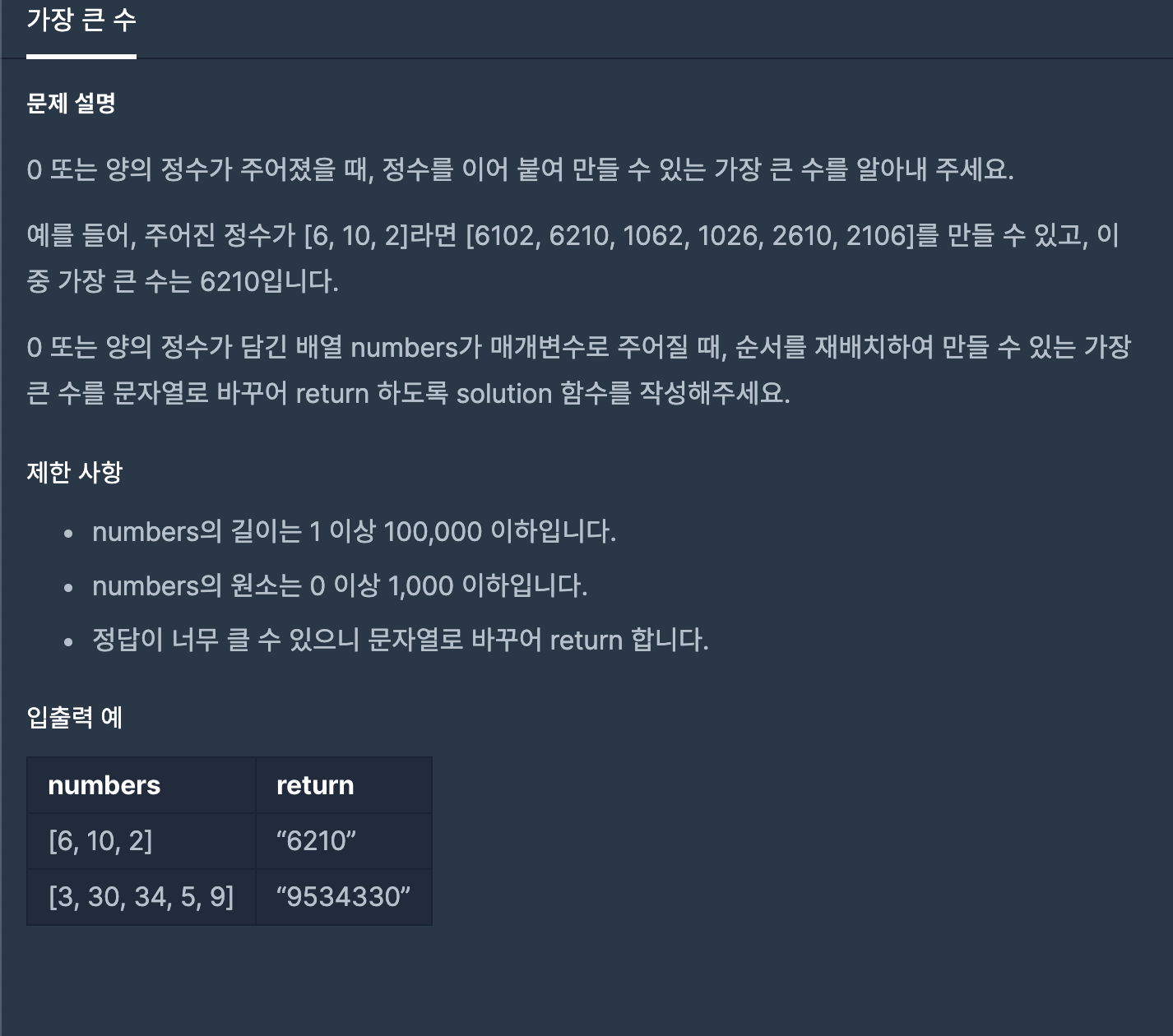 간단하게 생각해서 큰 수가 앞에오면 된다는 생각은 절대절대 하면 안된다.