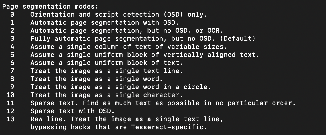 무작정 어떤 psm이 좋다는 것은 없다. 내가 추출하고자 하는 글자의 성질을 파악하여 고르면 된다.