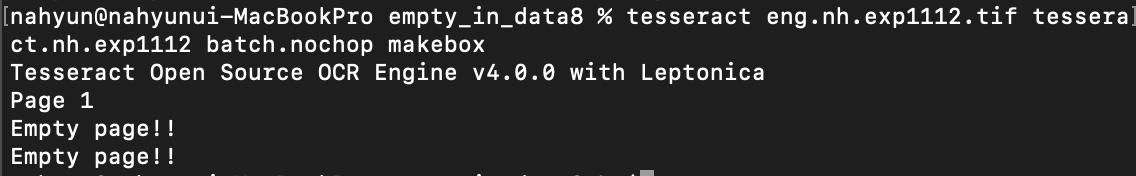 이때 empty page!라는 오류가 나고, 이 box파일을 jTessBoxEditor로 열었을때 box가 잡히지 않는 경우가 발생한다.