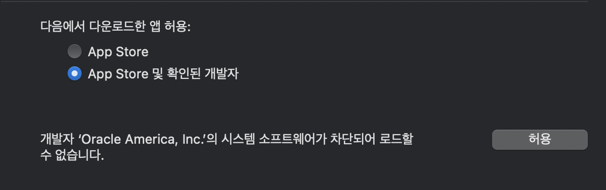 더블클릭을 하게 되면 보안설정을 하라는 메시지가 뜨고 [시스템 환경설정 --> 보안 및 개인정보 보호 --> 일반탭]의 아래부분을 확인하면 아래와 같은 내용을 확인할 수 있다.