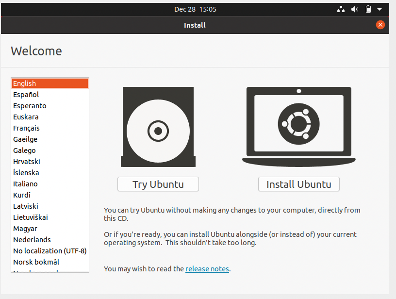 위와같은 과정을 마치면 광학드라이브에 우분투를 넣어줘야한다!