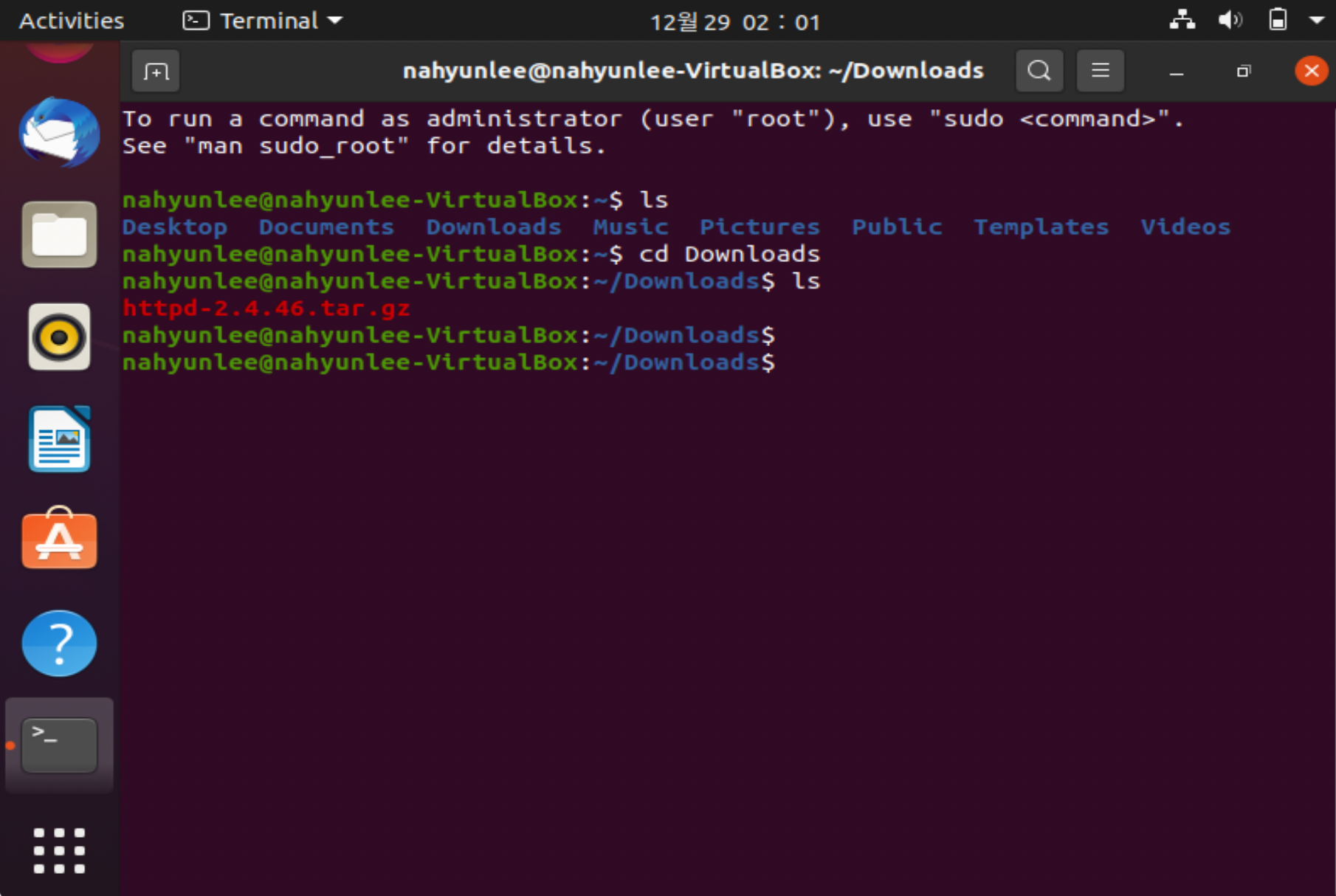 httpd파일이 잘 다운이 되어있는 것을 확인할 수 있다.