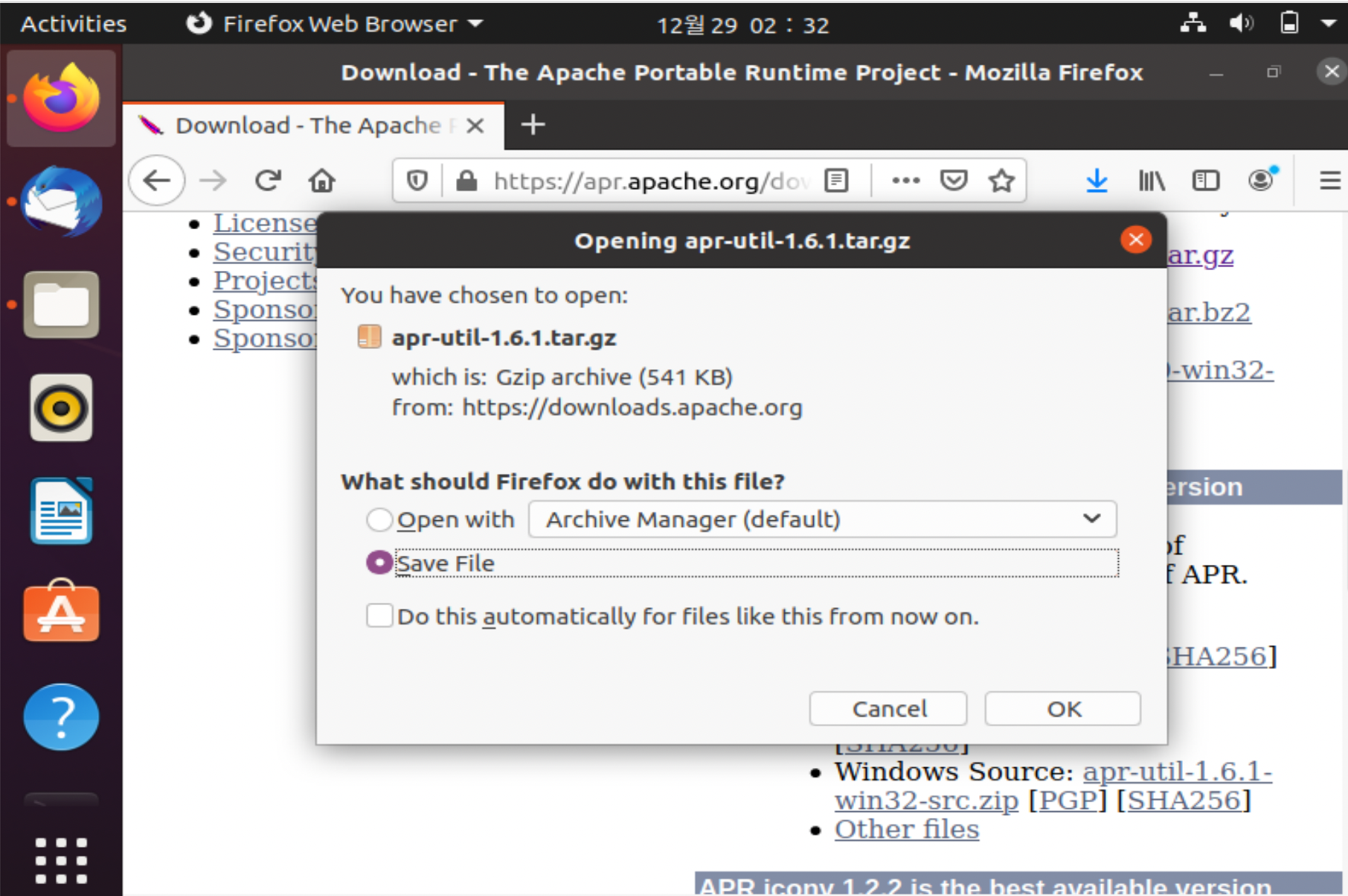 두가지 파일로 존재하는데 항상 리눅스에서 gz파일을 친숙하게 봐왔기에 gz파일을 다운받았다.