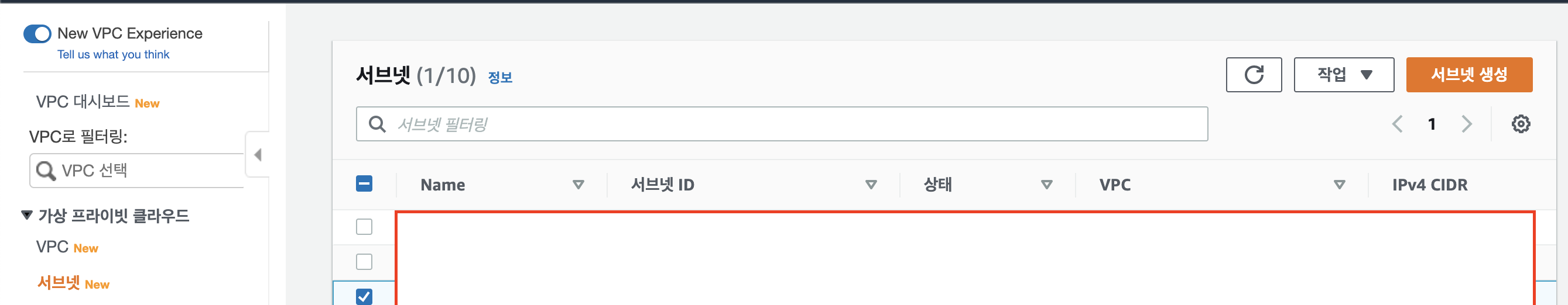 vpc의 서브넷으로 이동하고 서브넷 생성을 눌러주자