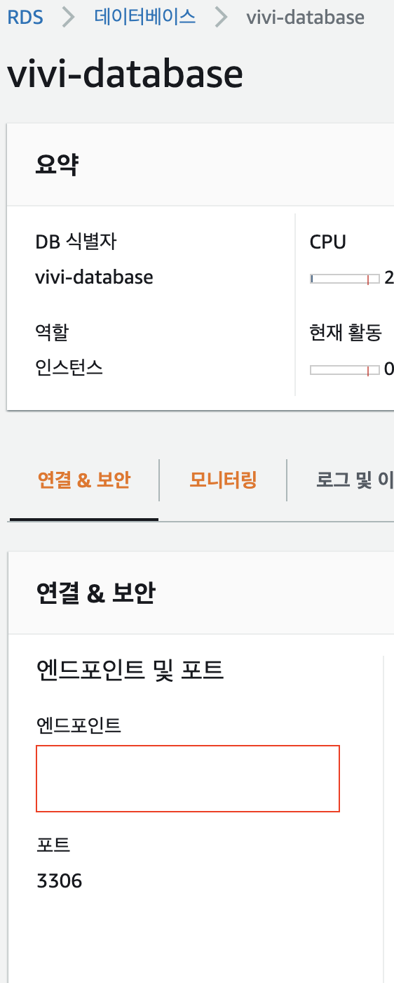 [RDS > 데이터베이스 > 자신의 데이터베이스 선택 ]