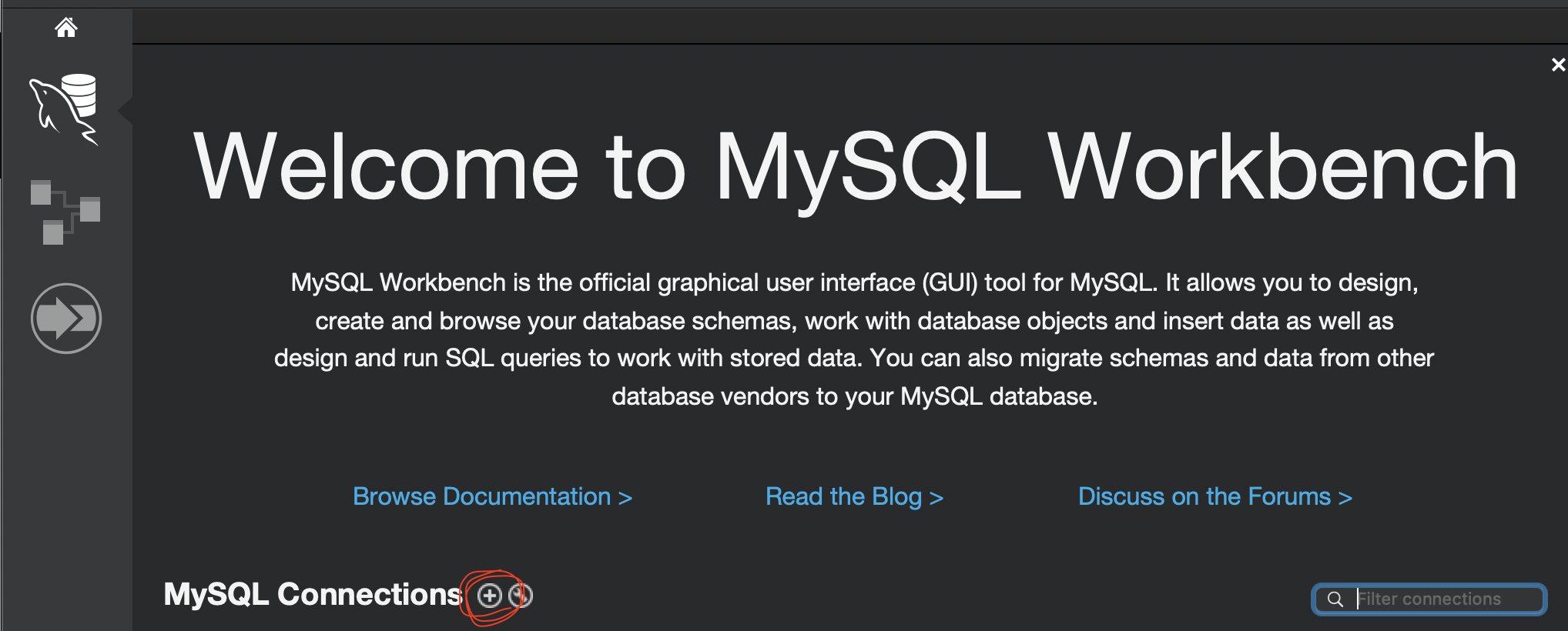 일단 MySQL Workbench를 실행하면 아래와 같은 화면이 뜬다