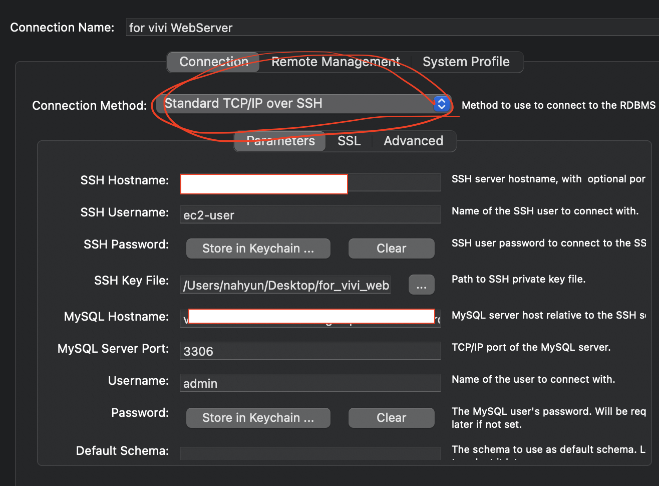 SSH KeyFile: ssh접속할 때 사용하던 키페어를 넣어주면 된다! (.pem파일)