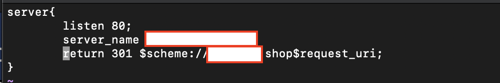 $scheme://[이동하고자 하는 도메인]$request_uri; 으로 return 시켜준다.