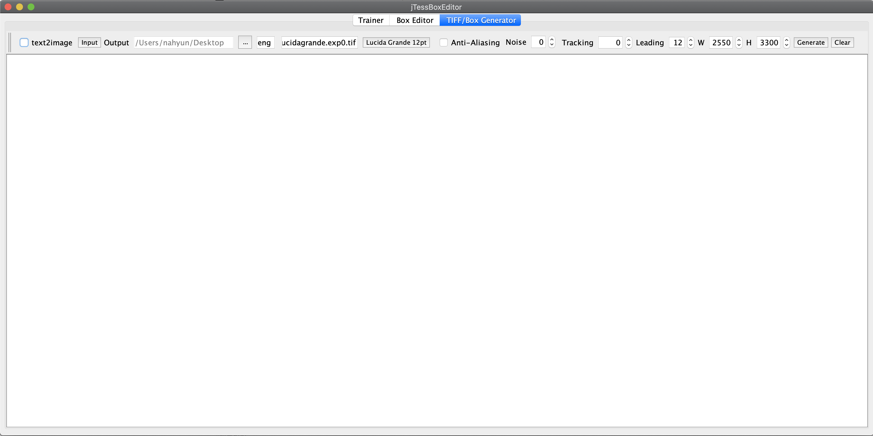 TIFF/BOX Generator는 txt파일을 tiff와 box파일로 변환해준다.