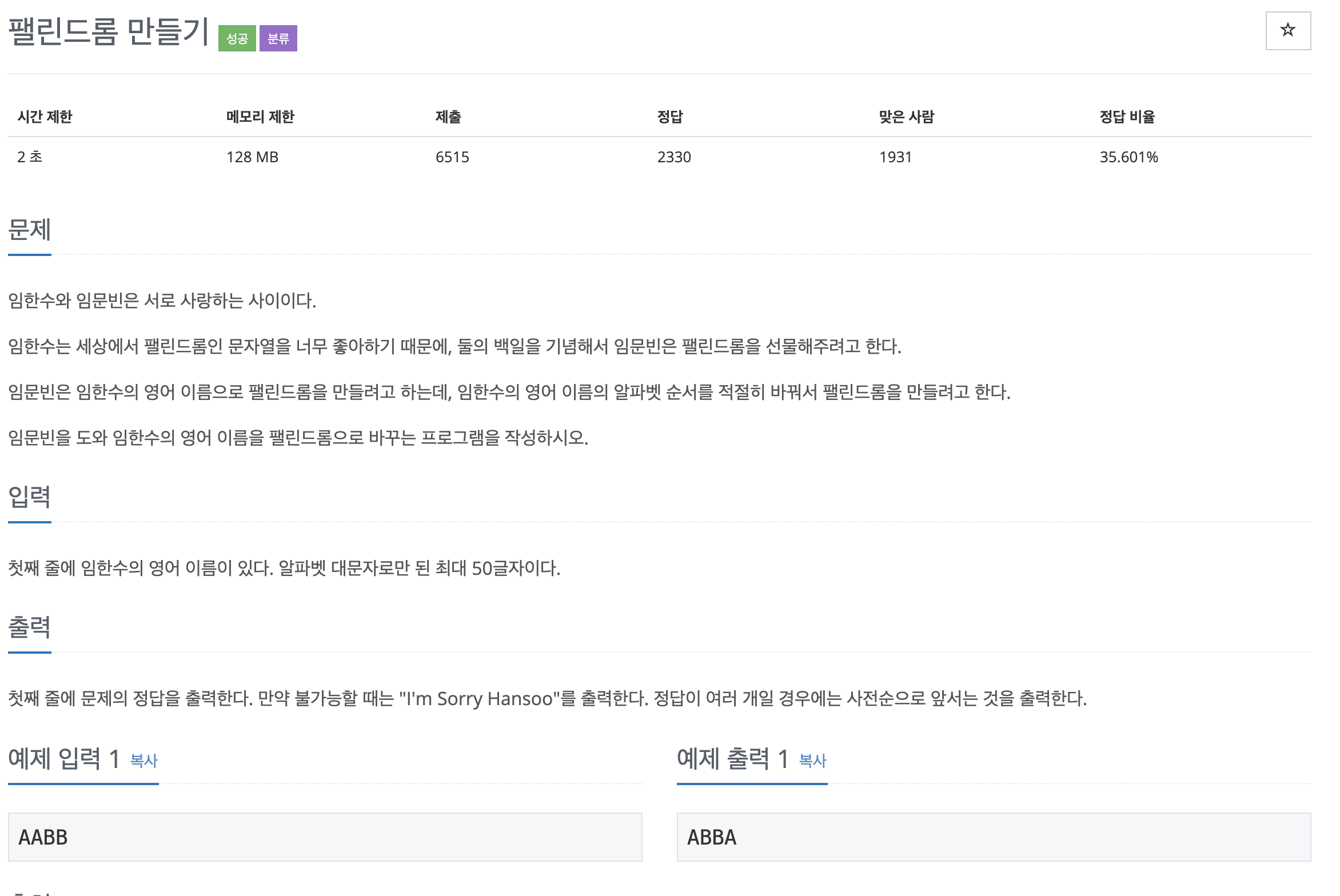 System.out.println("I'm Sorry Hansoo");